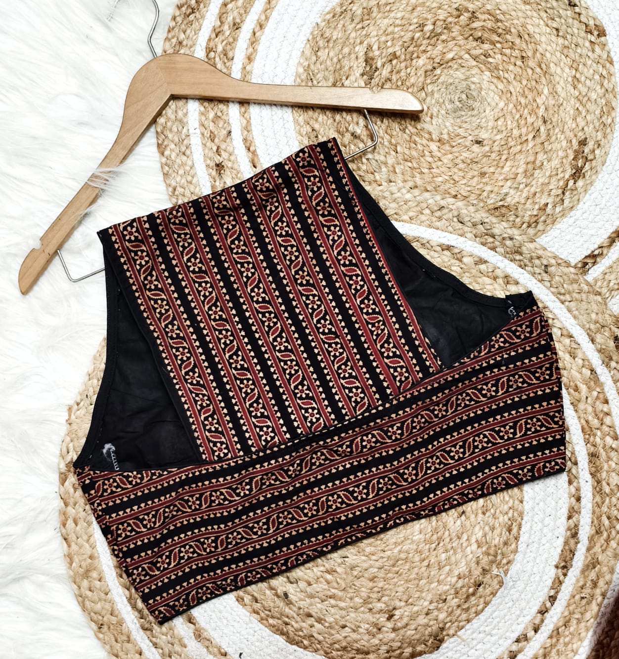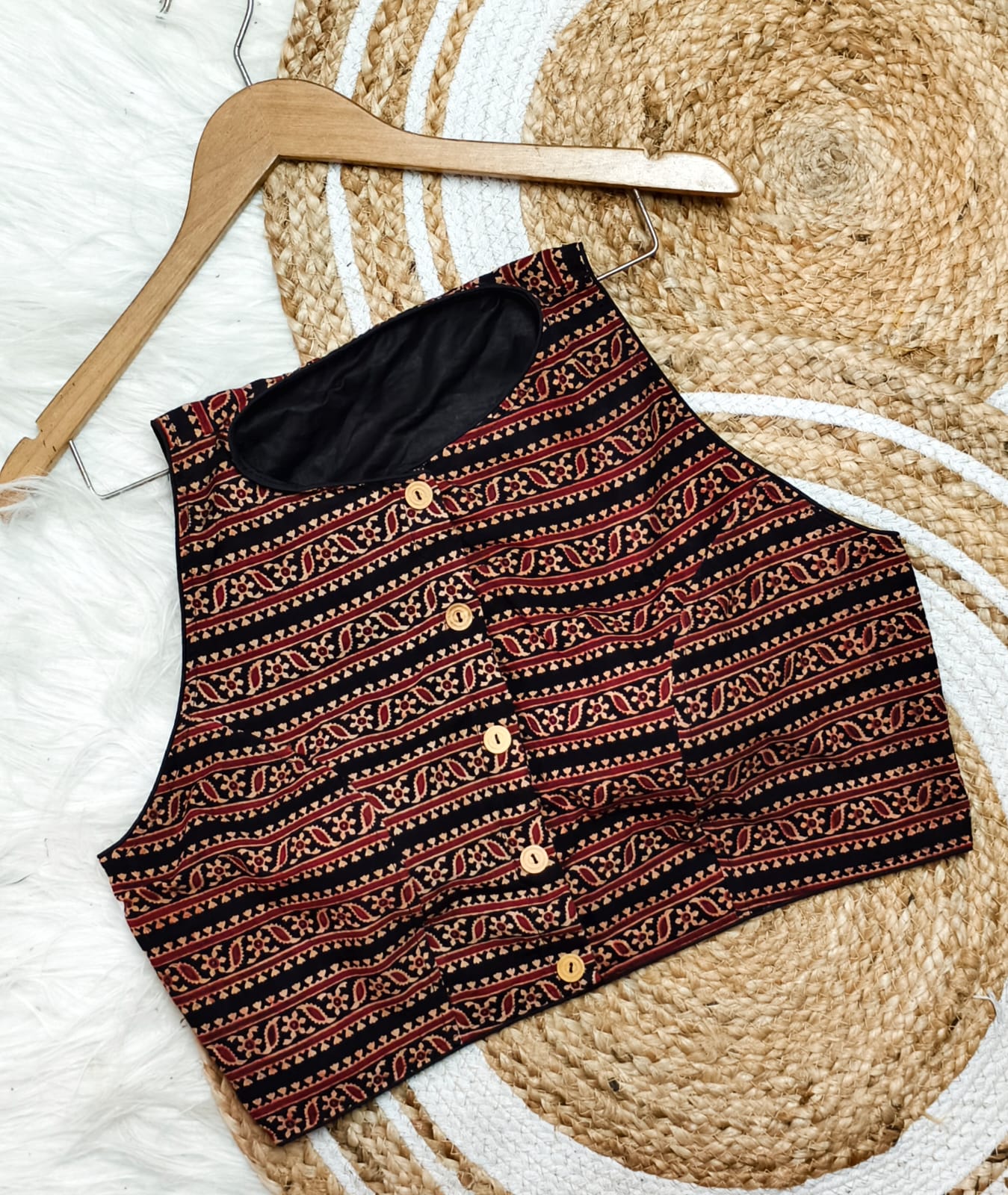 High Neck Cotton Ajrakh Padded Blouse