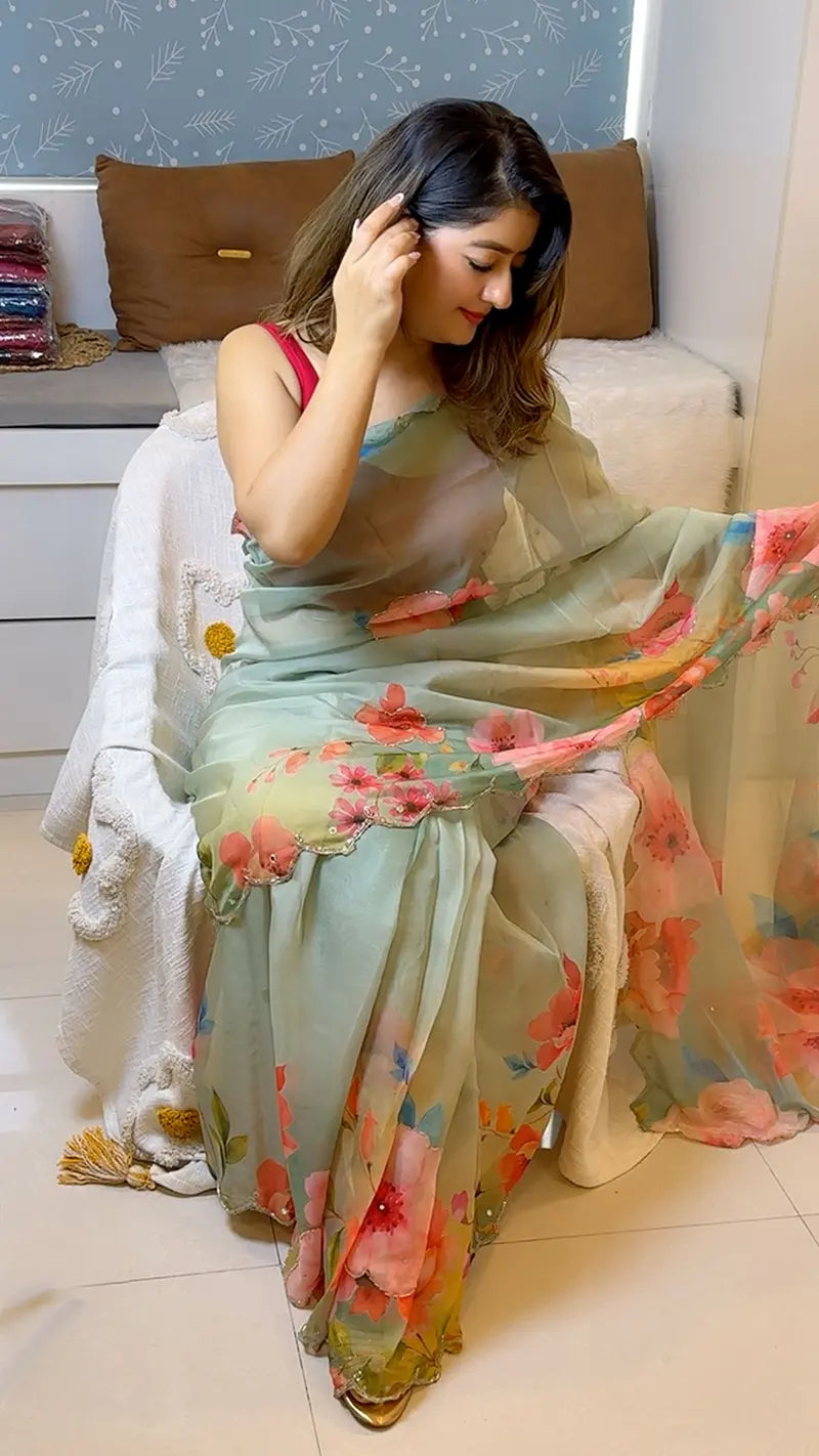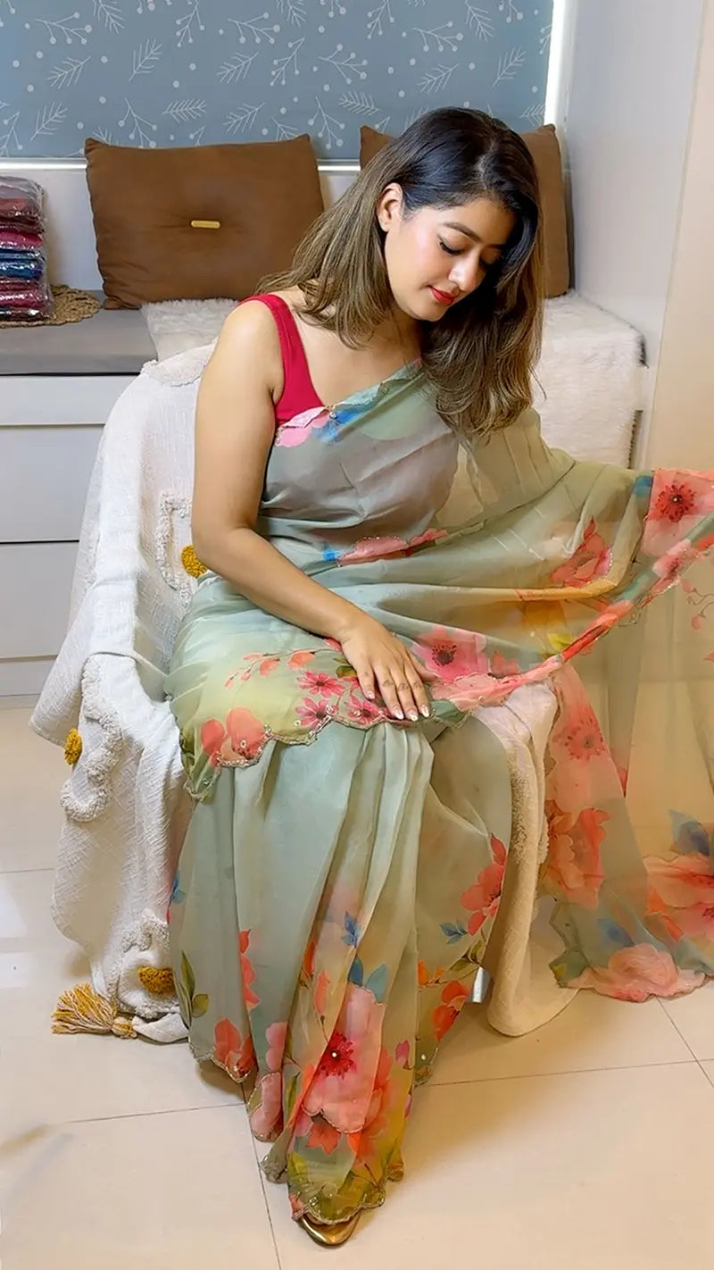 Organza Saree All Over handwork