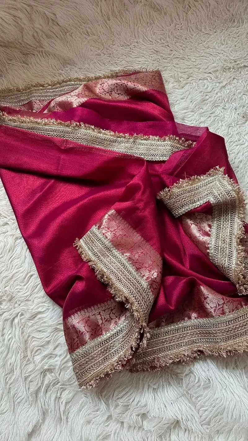 Banarasi Glass Tissue Silk Saree with Lace Border