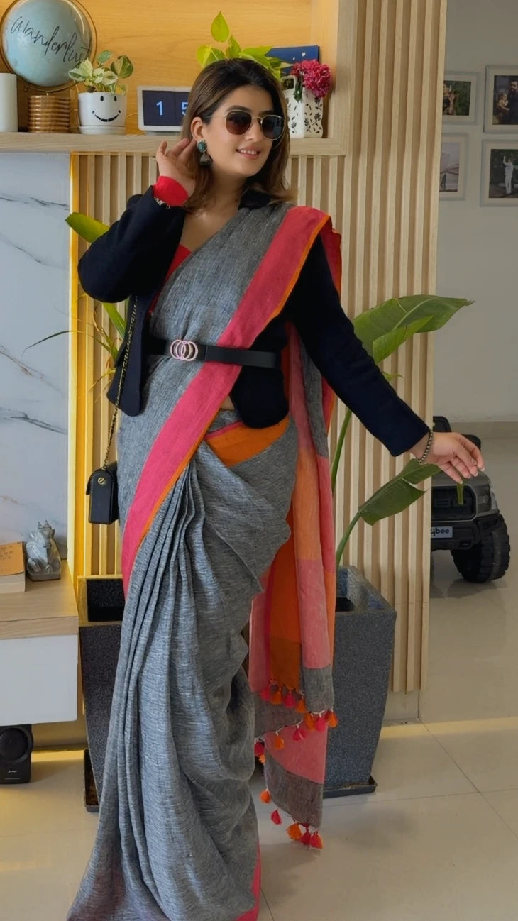 - Stitched blouse worn by the model is for styling purpose only. It isn't included.