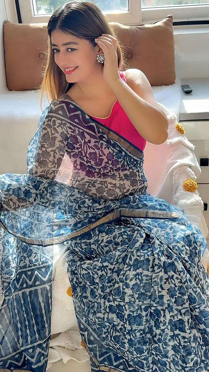 Bagru Block Print Kota Doriya Saree