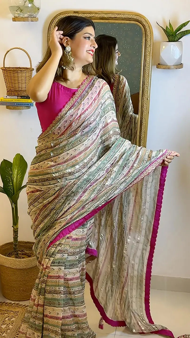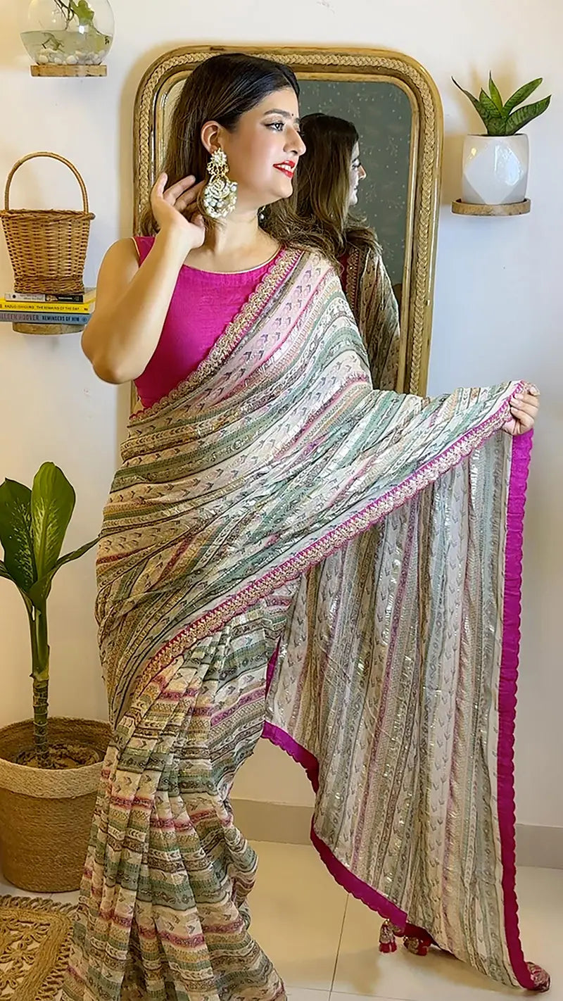 Georgette Soft Tissue Saree With Weaved Scallop Borders